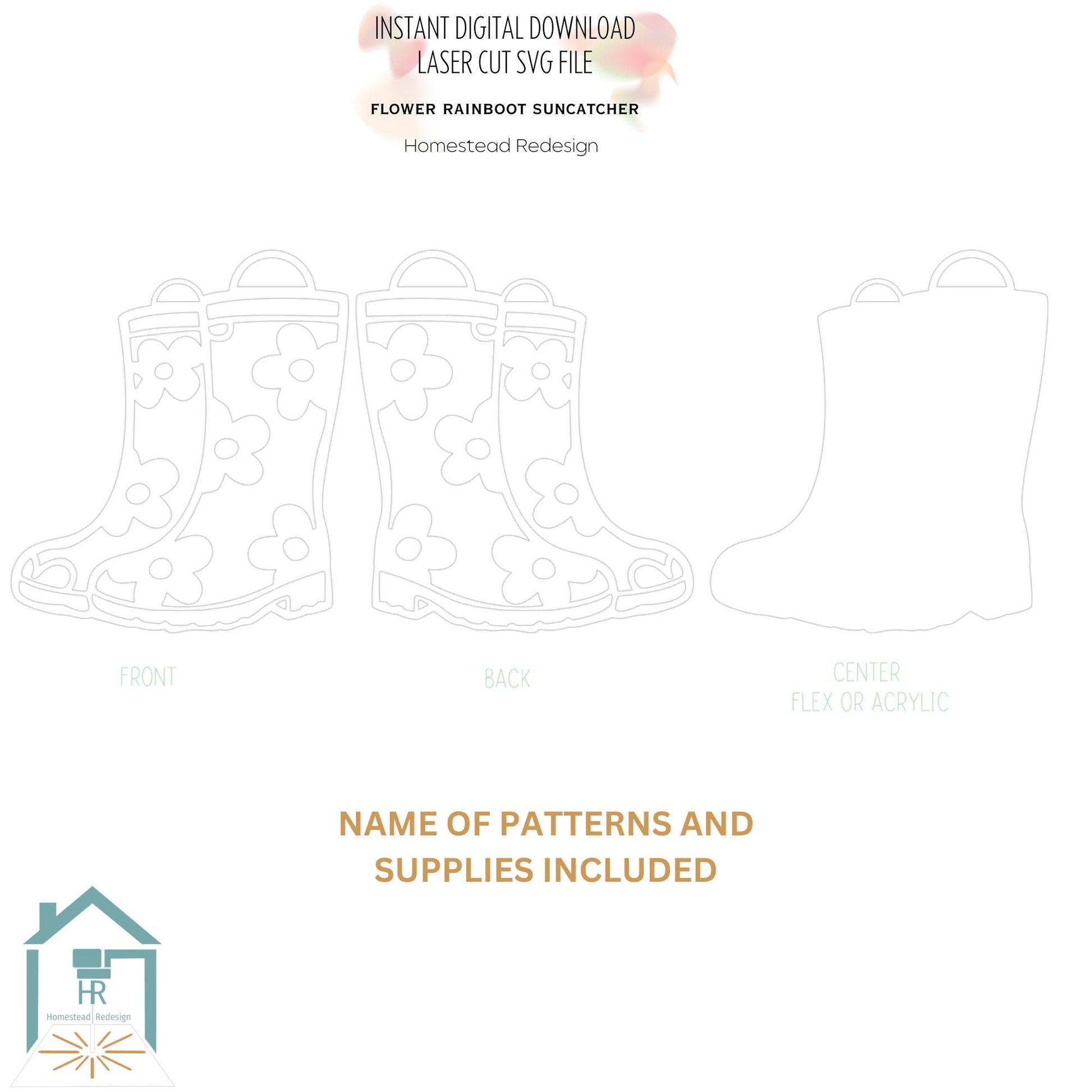 Dasiy flower rain boot window suncatcher laser cut and ready file, SVG Instant digital download.