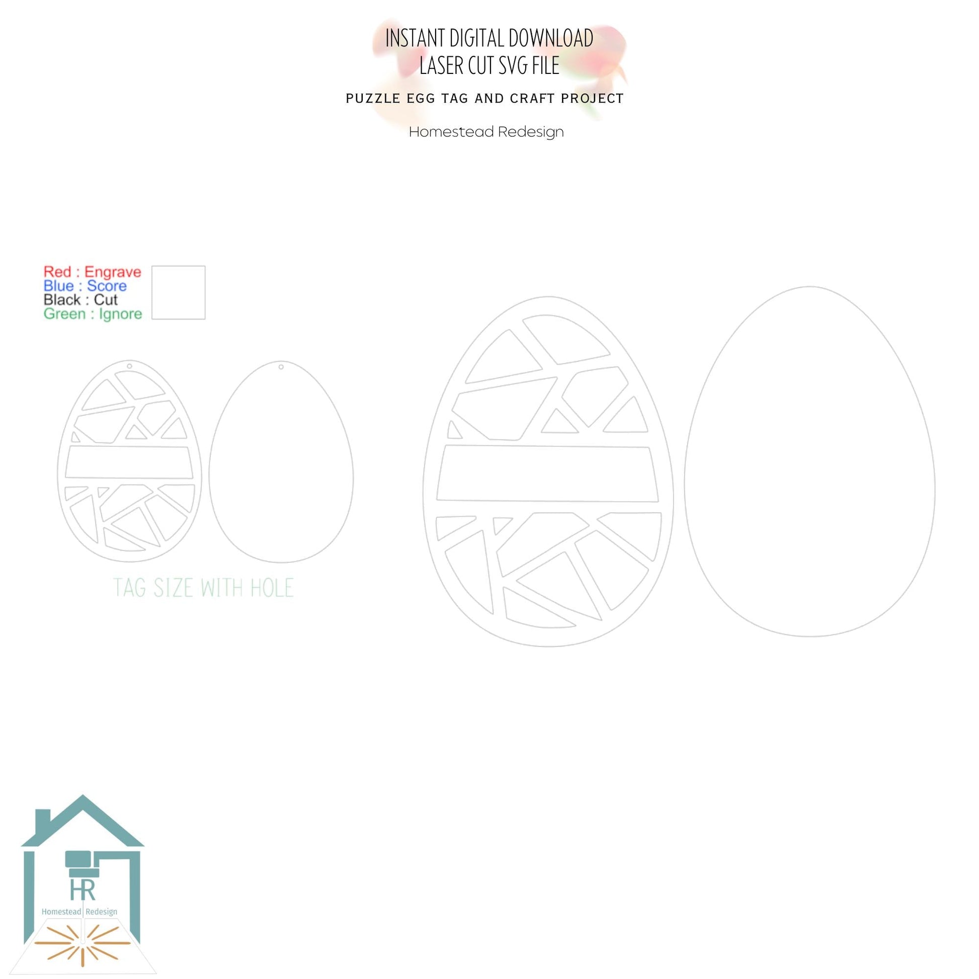Easter Egg puzzle tag and craft project SVG, laser ready, cut file, Instant digital download.