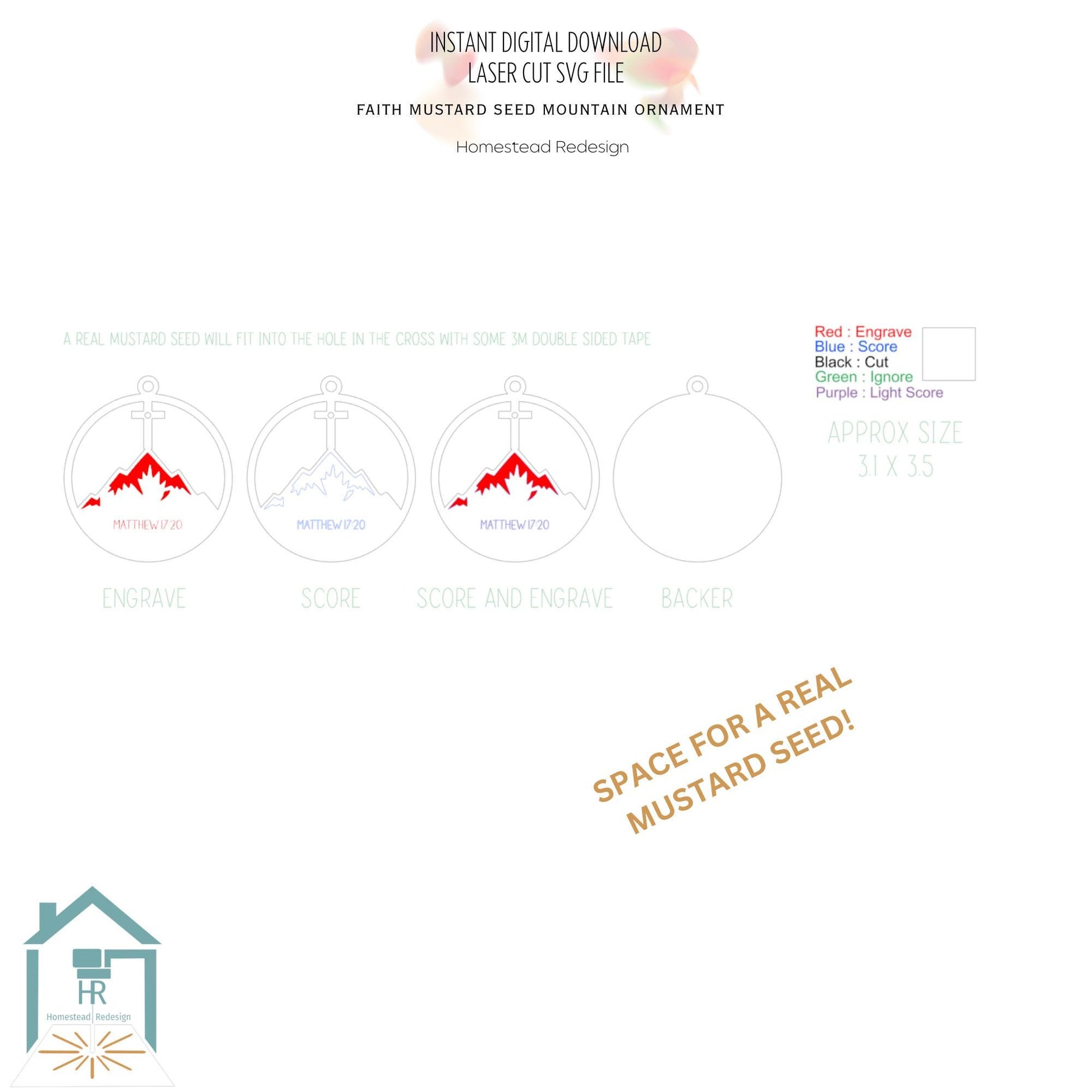 Faith as a mustard seed Christmas tree ornament laser ready cut file, Matthew 17:20 SVG Instant digital download.
