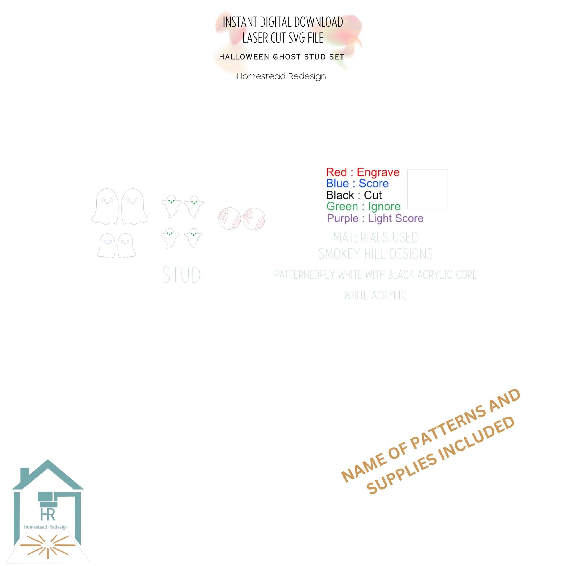Halloween Ghost stud earring set. Laser ready jewelry engrave and cut file, SVG Instant digital download.