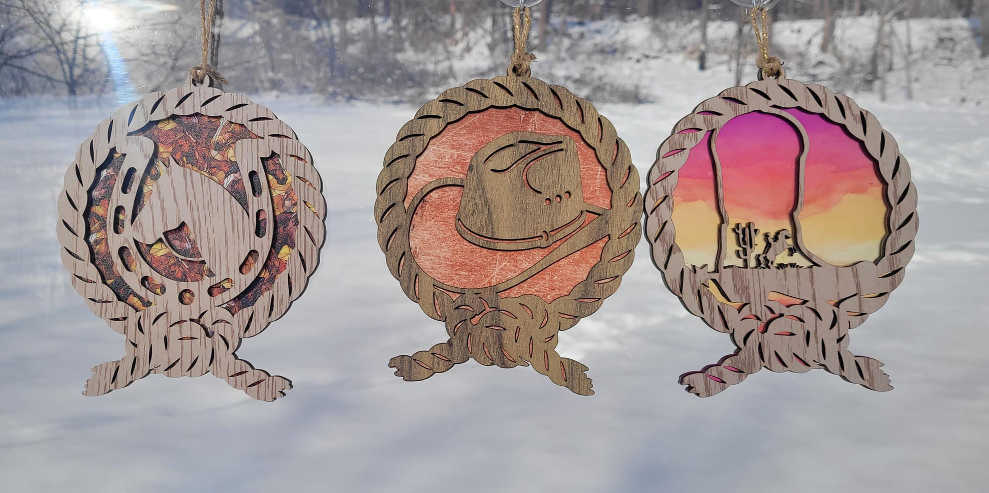 Western Rope Sun Catcher Bundle. Horse, Hat and Boot. 3 designs laser ready cut file, unlimited Commerical use SVG Instant digital download.